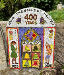 Left: The 2025 well-dressing theme, celebrating 400 years of the church bells.