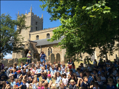 Above: Pupils and staff of Holywell C of E Primary School hold their own special